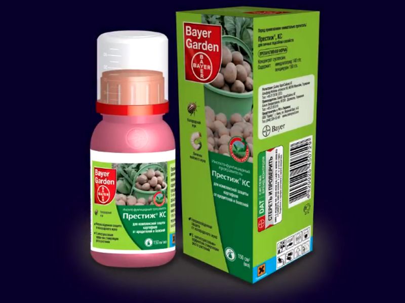 "Prestige" - ubat untuk kumbang kentang Colorado, bertujuan untuk memproses ubi sebelum menanam. Ia dijual dalam balang kecil 60 ml, yang dibungkus dalam kotak kadbod. Manual arahan disediakan yang menerangkan penggunaan secara terperinci. Selain menghapuskan perosak, "Prestige" direka untuk memerangi penyakit (kudis biasa, kaki hitam, rhizoctoniosis, reput basah).