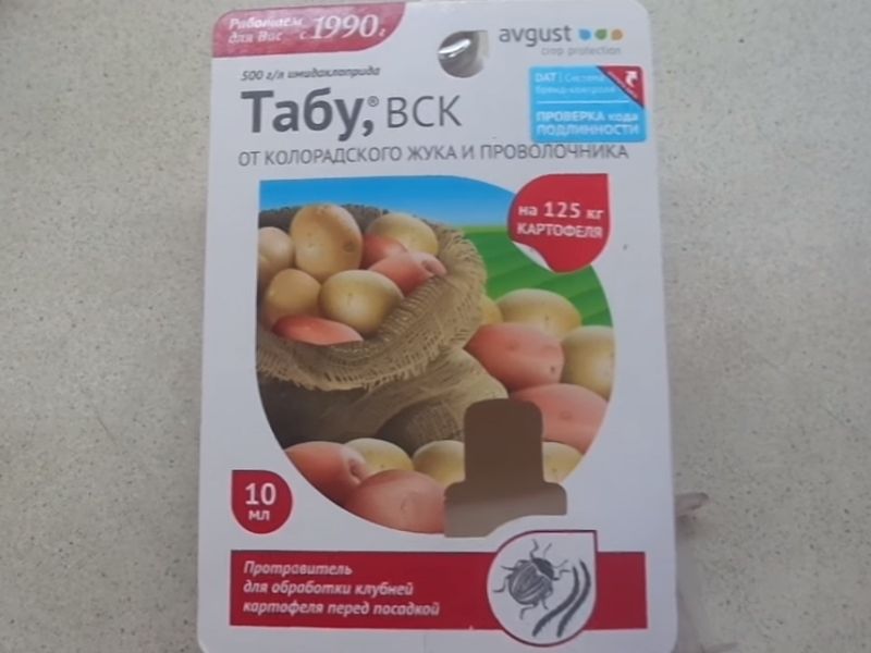 Bahan toksik "Taboo" bertujuan untuk memproses ubi kentang sebelum ditanam. Anda boleh membelinya dalam jumlah yang berbeza, tetapi dalam kes ini, pertimbangkan ampul 10 ml. Produk ini dicairkan dalam air, mengikut arahan dengan ketat, dan disembur pada kentang. Ampul ini direka untuk 125 kg kentang.