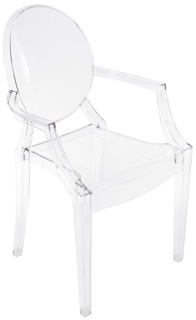 Bentuk kerusi dibuat dalam gaya klasik dan sesuai untuk gaya sejarah. Tetapi ia benar-benar telus, yang menjadikannya serba boleh. Reka bentuk reka bentuk asal boleh diletakkan di mana-mana studio dapur, ruang makan, ruang tamu. Model Louis Ghost sesuai untuk beranda. Bahan itu sama sekali tidak takut air. Perabot tidak akan rosak oleh hujan, dilupakan di taman.