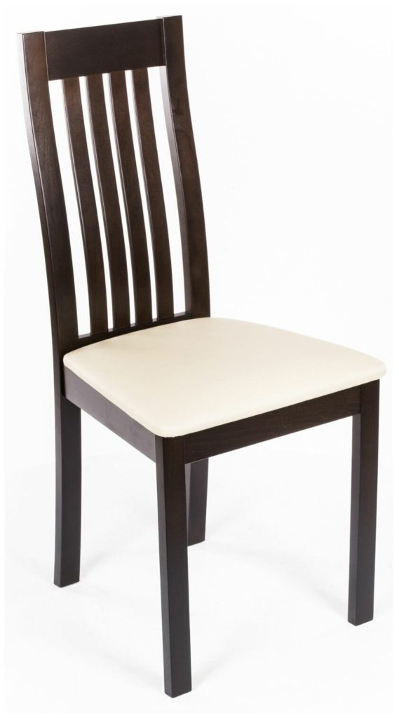 Model klasik sentiasa dalam fesyen. Pengilang domestik telah mencipta reka bentuk yang kekal dan bergaya. Tapak kayu. Bahagian belakang dicat dengan warna wenge. Kaki hadapan sedikit melengkung. Sandaran belakang dibentuk oleh selat berbentuk ergonomik.