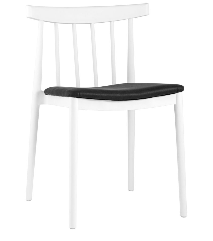 Model Kosta direka untuk dapur, tetapi juga boleh digunakan di kawasan lain. Reka bentuk yang stabil pada kaki logam hitam mempunyai tempat duduk ergonomik yang selesa dengan bahagian belakang yang lebar. Upholsteri yang diperbuat daripada kulit putih secara visual membesarkan bahagian atas produk.