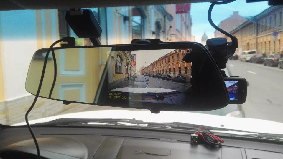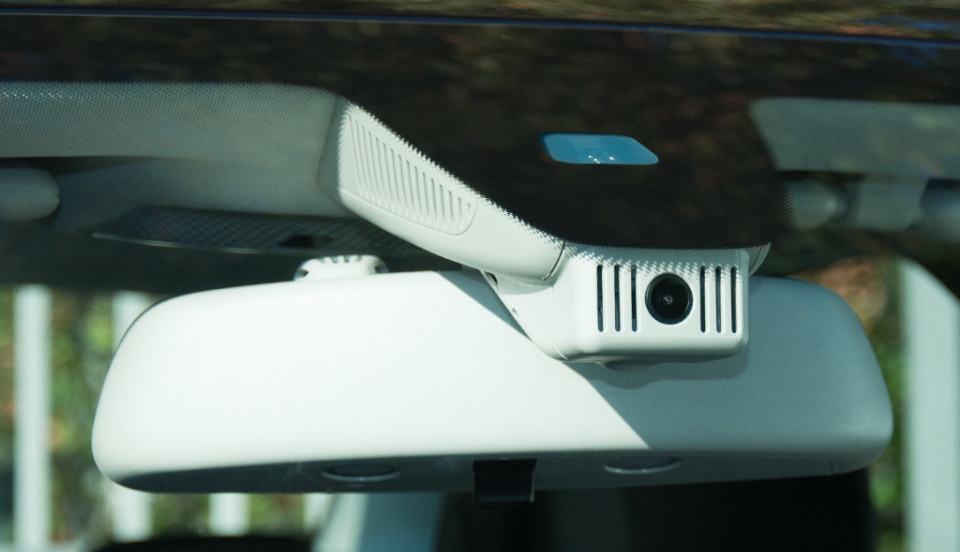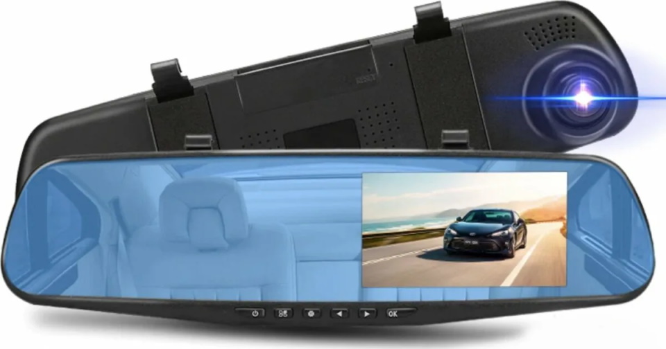 Peranti universal yang menggabungkan fungsi cermin saloon dengan kamera video sudut lebar yang dihidupkan apabila pencucuhan kereta dimulakan dan merakam video definisi tinggi pada kad memori.