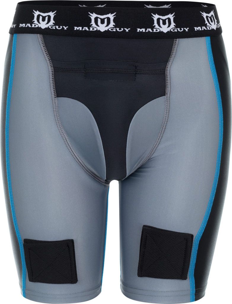 Perlindungan ini direka khusus untuk kanak-kanak. Terpakai kepada hoki sahaja. Ia dibuat dalam bentuk seluar pendek, yang mempunyai Velcro khas untuk gaiters. Pengeluar Rusia MadGuy telah membuktikan dirinya mempunyai kualiti yang sangat baik. Disebabkan fakta bahawa jalur elastik lebar dijahit ke dalam pinggang, seluar pendek memegang dengan baik dan tidak bergerak semasa pergerakan aktif. Di kawasan yang mempunyai peluh yang tinggi, kain khas digunakan untuk menghilangkan kelembapan dan pengudaraan.