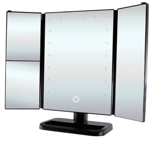Pengilang - BaByliss (Perancis). Diameter - 12 cm, tinggi - 22 cm, berat - 0.5 kg. Dua sisi - normal, dengan pembesaran 8x. Bekalan kuasa - dari rangkaian. Tiga tahap lampu latar (sejuk, hangat, neutral). Berasaskan suis, mekanikal.