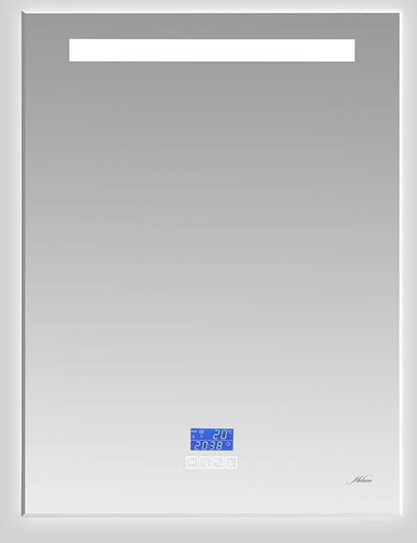 Aquaton (Rusia). Gaya - berteknologi tinggi. Kanvas segi empat tepat - lebar 100 cm, tinggi 70 cm Selain itu, cermin pembesar terbina dalam. Salutan - filem khas (perlindungan terhadap kelembapan, kerosakan). Cahaya (atas, bawah) - Jalur LED 12 watt. Jam elektronik terbina dalam, suis sentuh.