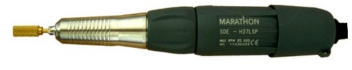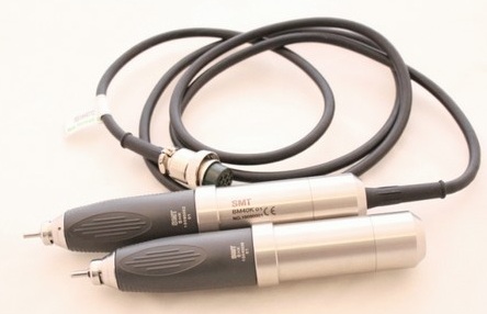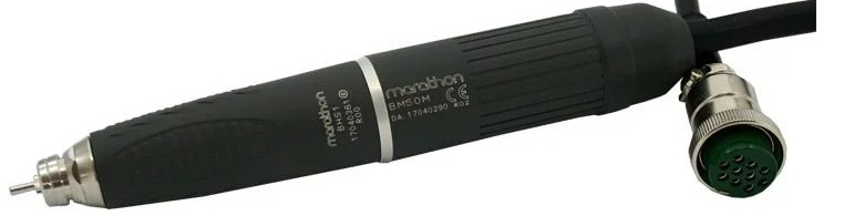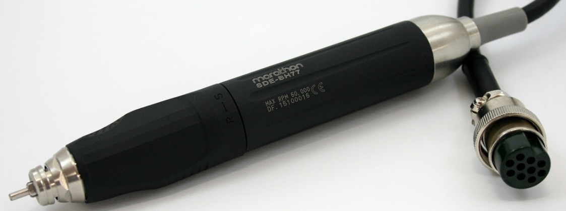 Alat tangan dalam bekas plastik nipis dengan sisipan logam: kepala, bahagian belakang struktur, palam penyambung (bahagian atas). Separuh daripada mikromotor adalah daripada struktur lurus, separuh lagi (lebih dekat dengan hujung) adalah bentuk ergonomik yang sempit. Serasi dengan kotak kawalan seperti "SDE-BM50M/BHS1".