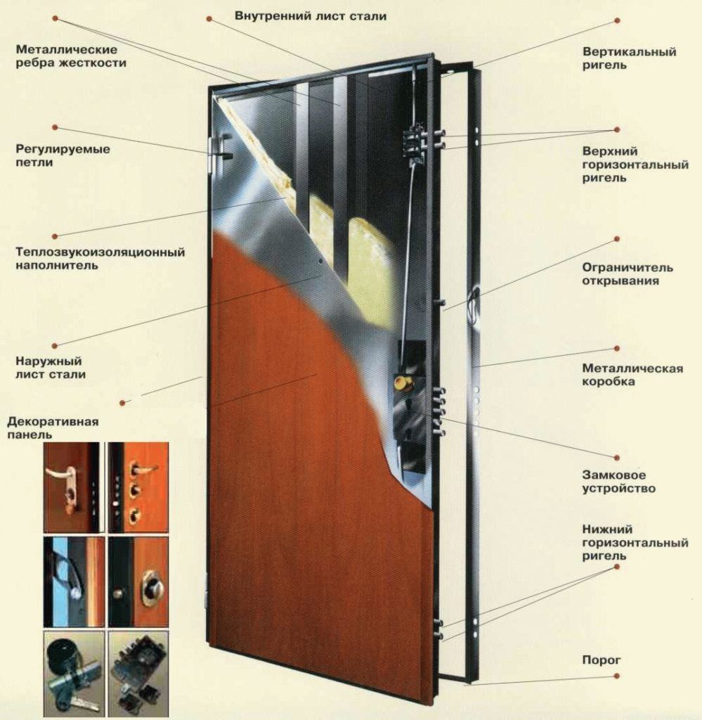 Mana-mana pintu berkualiti harus mempunyai beberapa elemen asas. Bingkai hendaklah dibuat daripada profil berbentuk U, kepingan keluli dilekatkan padanya menggunakan kimpalan titik. Rusuk yang mengeras hendaklah disediakan di bahagian dalam pintu.