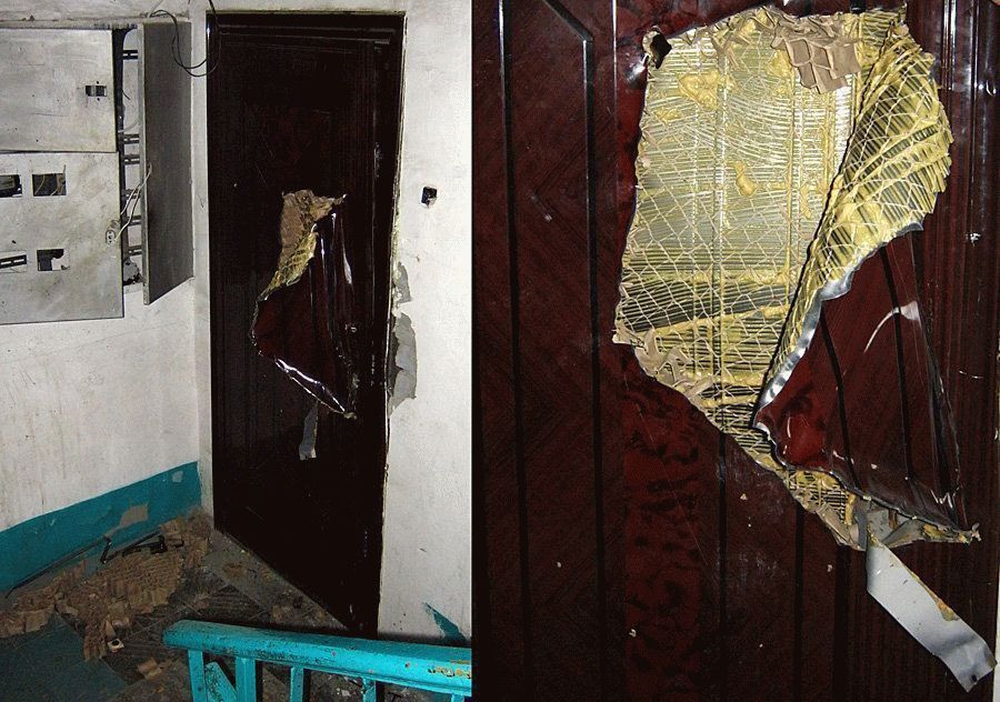 Bahagian pintu pangsapuri ditutup dengan sebarang bahan yang sesuai. Engsel dengan galas digunakan untuk mengikat bingkai pintu. Sebagai perlindungan tambahan, pin anti-pembuangan khas digunakan, yang memanjang apabila pintu ditutup.