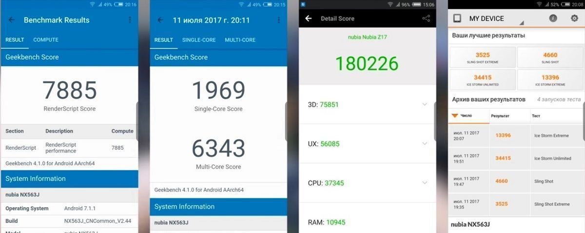 Sistem Android 7.1.1 Nougat dipasang, kemas kini kepada 8.0 tidak datang.Cangkang Nubia UI 5.0 dipasang di bahagian atas, yang mempunyai reka bentuk tersendiri yang menarik, yang saya sukai lebih daripada Google standard. Saya kecewa dengan terjemahan yang mengerikan ke dalam bahasa Rusia, gangguan berkala dan kegagalan program. Untuk peranti pada harga yang begitu besar, ini tidak serius. Semoga kemas kini akan membetulkan pepijat ini.