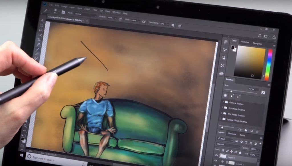 L'appareil présente d'excellentes caractéristiques de luminosité et de contraste. Cet écran est parfait pour travailler avec des images. L'appareil a de bons angles de vision, donc lorsque l'écran est incliné même de 180 degrés, les couleurs restent juteuses et non déformées. La tablette elle-même a un écran brillant, mais grâce aux indicateurs de luminosité, vous pouvez travailler confortablement dessus même en plein soleil. L'écran tactile prend en charge jusqu'à 10 touches simultanées et répond rapidement aux actions de l'utilisateur.