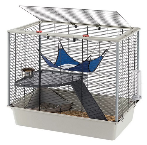 Uma casa chique para ratos será a gaiola Ferplast Furet +.O fabricante produzia gaiolas para furões, mas decidiu modificar seu produto e torná-lo menor para roedores, com isso, a distância entre as barras é de 10 mm. Um amplo espaço de convivência tornará a estadia dos animais na gaiola o mais confortável possível. Parâmetros: 78x48x70. Como a gaiola é alta, os ratos podem rastejar livremente pelas barras. Se desejado, a caixa pode ser equipada com um tubo de túnel, escada, roda e outros brinquedos. A bandeja é removível e fácil de limpar.
