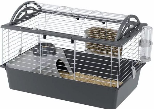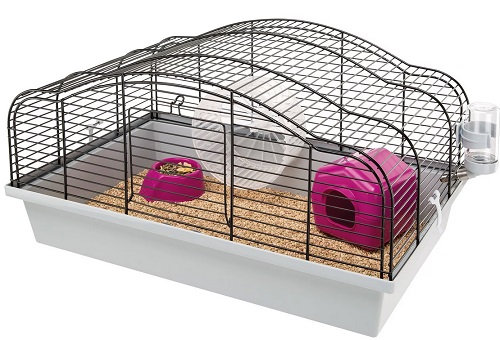 Segundo os compradores, o modelo Ferplast Oriente 10 é ideal para hamsters. Por um lado, o formato é tradicional, já que o fundo é de plástico e as grades são de metal, e por outro, é incomum, e todos graças ao telhado arqueado curvo. Comprimento: 49,5 cm, largura: 31,5 e altura: 25,7 cm. A frente da gaiola está equipada com uma porta de abertura. A embalagem contém os acessórios mais importantes: roda de plástico, bebedouro, comedouro e ninho. A bandeja plástica é removível, o que facilita muito o processo de limpeza.