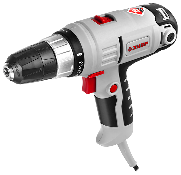 A furadeira/parafusadeira com fio ZUBR ZSSh-300-2 K é uma ferramenta elétrica com as funções de uma chave de fenda para apertar e desapertar parafusos, parafusos, parafusos autorroscantes e assim por diante, uma furadeira sem martelo para fazer furos em materiais não muito densos .A ferramenta é alimentada por eletricidade usando um cabo de rede de uma rede comum. Trezentos watts de potência permitem que o mandril sem chave atinja uma velocidade de mil e quatrocentas rotações por minuto. O torque máximo da unidade é de trinta e cinco Newton por metro. Fornecido em um elegante estojo de plástico.
