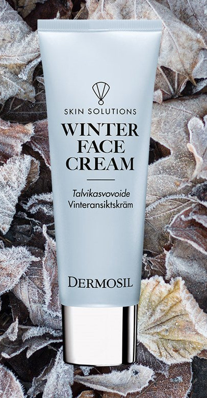 Um produto finlandês que regula o nível de pH. Possui propriedades regeneradoras e nutritivas, contém componentes naturais protetores e anti-inflamatórios (acetato de tocoferol ou vitamina E, linho e outros ingredientes). A eficiência é perceptível mesmo em geadas severas (até -30). Restaura visivelmente e rapidamente as células danificadas da epiderme, acalma a irritação, alivia a vermelhidão e outros sintomas de rachaduras. "Dermosil Winter Face" tem uma textura densa, uniformemente distribuída pela superfície, e também tem um leve aroma de baunilha que desaparece rapidamente. O produto está disponível em bisnagas de 50 ml, equipadas por conveniência com um bico estreito que dispensa a quantidade certa de creme de forma econômica. O custo médio é de - 1.000 rublos.