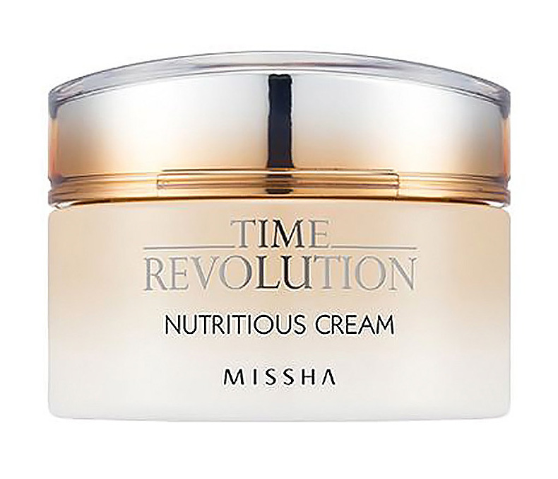 Produto cosmético da popular empresa sul-coreana Missha.Creme hidratante com uma composição rica: a lista de componentes inclui vitaminas E e B3, macro e microelementos, proteínas, minerais, sorbitol, ácido poliglutâmico, extratos vegetais (lentilha, soja), camomila, lavanda, além de óleo de coco, karité manteiga e macadâmia. Graças a esses ingredientes, a preparação é um verdadeiro protetor da pele seca do vento e do mau tempo. O produto elimina de forma rápida e eficaz os sinais de rachaduras - descamação, vermelhidão, irritação. Com a aplicação regular, a superfície do rosto fica mais firme, aveludada, o tom uniforme e as rugas suavizadas. Além disso, "Missha Time Revolution Nutritious Cream" retarda o envelhecimento das células epidérmicas. O custo médio é de 2.950 rublos.
