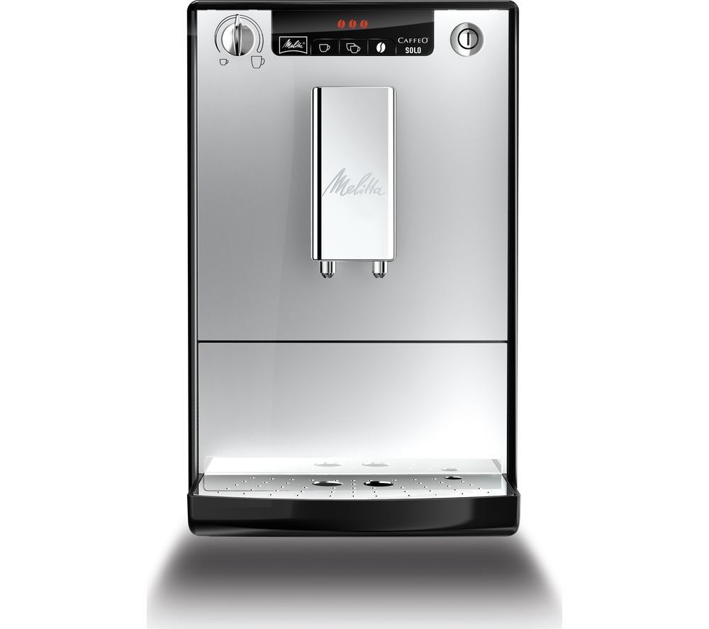 A máquina de café Melitta Caffeo Solo é a única e única do seu tipo no mundo, é a máquina de café mais pequena e compacta. Ao mesmo tempo, é bastante funcional, apesar de seu orçamento, e possui todas as funções básicas necessárias. A máquina funciona com grãos de café, pois está equipada com um moedor de café com grau de moagem ajustável (você pode escolher um dos três graus disponíveis). As configurações do dispositivo permitem ajustar a intensidade da bebida, selecionar a temperatura do café desejada. Além disso, este modelo realiza a preparação preliminar de grãos, para que a bebida fique saturada.