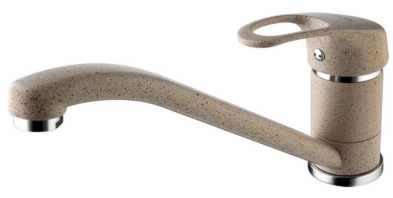 É compacto em design e não tem peças extras. Uma característica importante é a presença de um aerador e um cartucho cerâmico.Devido a eles, o dispositivo durará muitos anos e manterá a água limpa. Há também uma função de supressão de ruído instalada no aerador. Além disso, a torneira não vaza porque fecha bem.