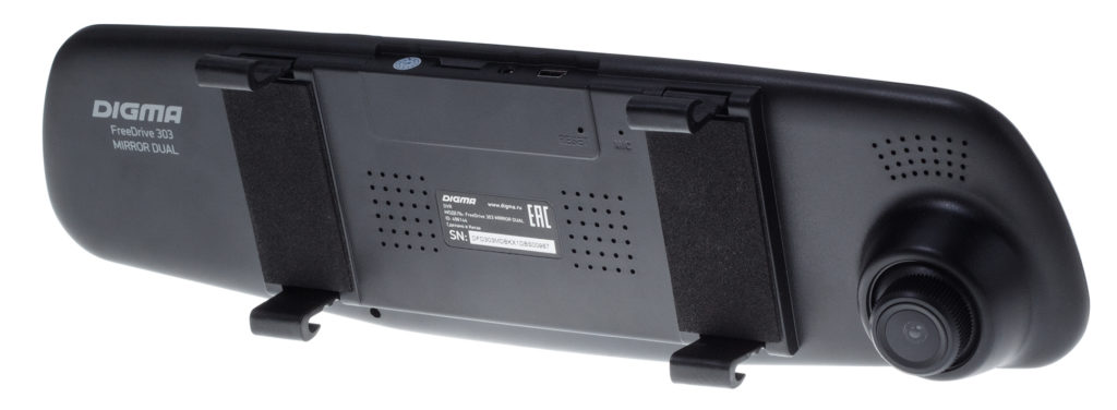 A unidade principal "dissolve-se" no espelho retrovisor, ou melhor, presa a ela com dois laços de borracha. Os solavancos na estrada não o tirarão do lugar.É difícil para pessoas de fora reconhecerem o DVR.