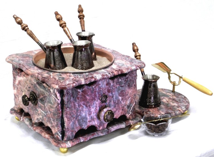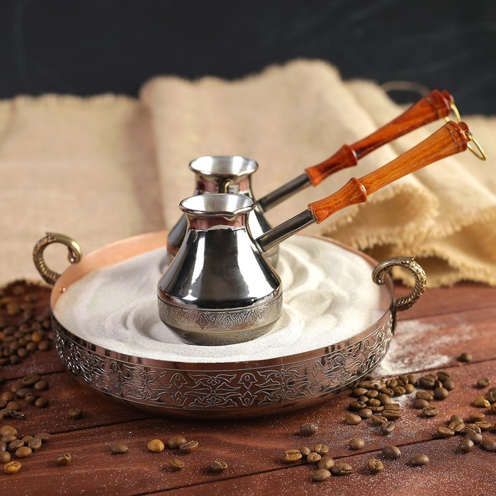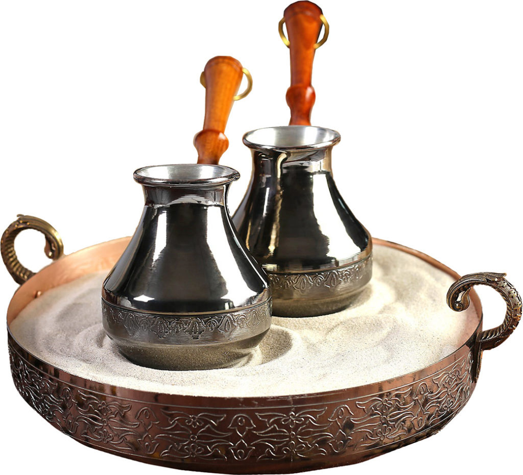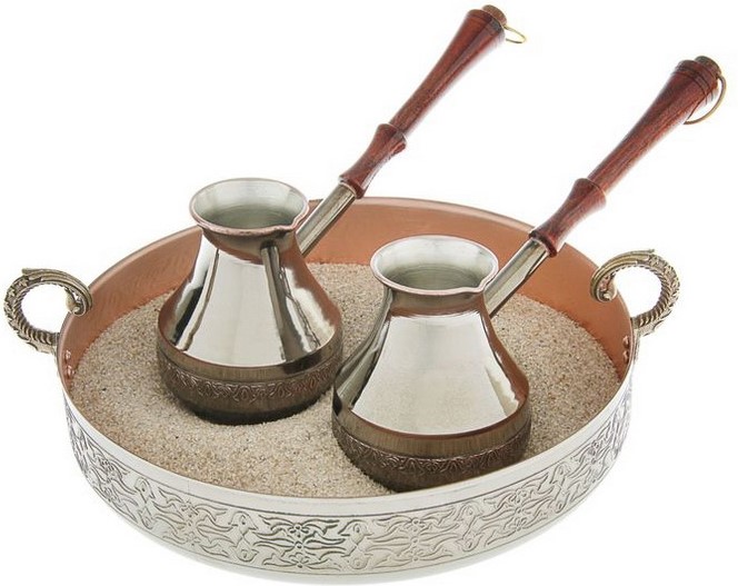 O café oriental preparado na areia quente difere do método usual de preparação, pois ao usar esse método, o sabor e o aroma da bebida são revelados ao máximo. Este método é adequado para verdadeiros conhecedores.