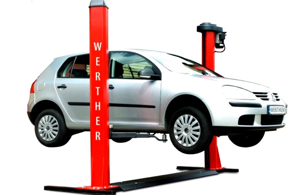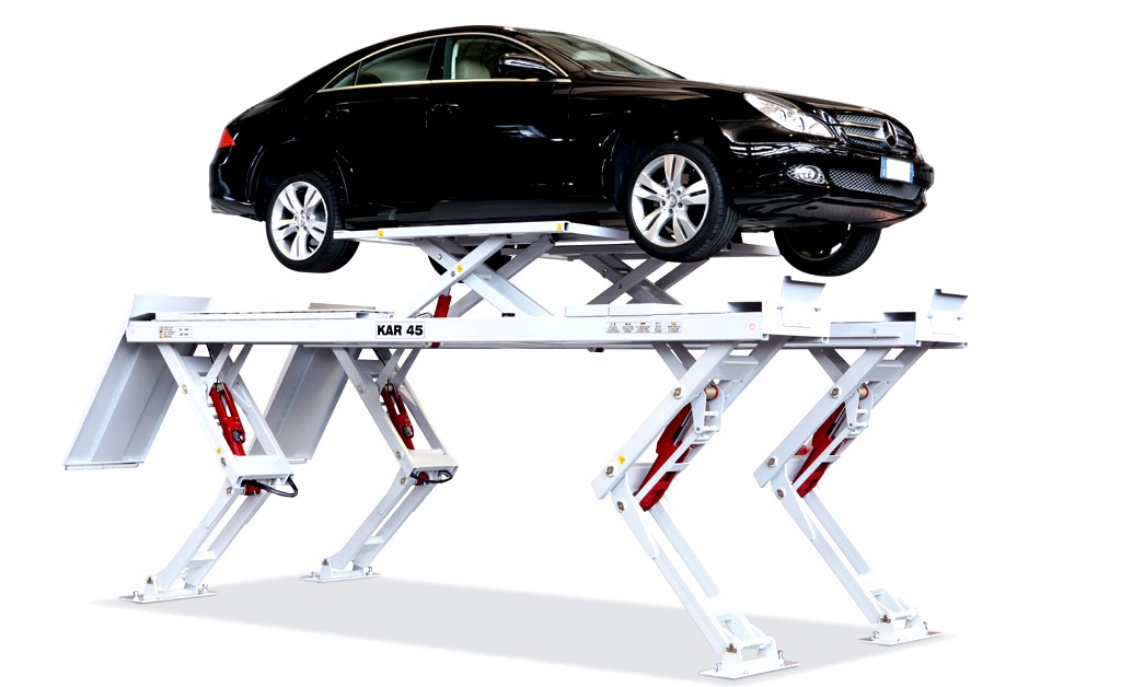 É muito utilizado em postos de gasolina de médio e pequeno porte, onde há caixas pequenas e pouco espaço livre, e há muita gente querendo consertar seu cavalo de ferro.A Corghi lançou uma unidade pesando 770 kg, com capacidade de carga de 4 toneladas, alimentada por uma rede de 380 V. O carro é elevado a uma altura de 1,9 m em 50 segundos. Existem cilindros hidráulicos independentes no valor de duas peças, patas de elevação do tipo assimétrico, travas automáticas que impedem que as patas girem de forma não autorizada.