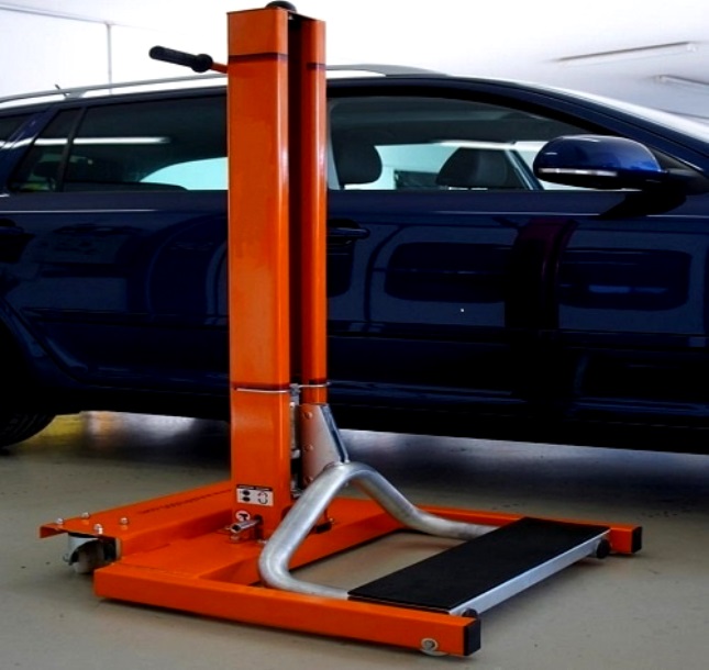 Graças a ele, é possível inclinar ou levantar carros de passeio com peso máximo de até 1,5 toneladas para fins de reparo e manutenção. Ele sobe tanto atrás do volante quanto acima do limiar. Para isso, é fornecido um forro de metal emborrachado. Âmbito de aplicação - serviços de automóveis, oficinas, concessionárias de automóveis, caixas individuais, onde uma pequena área é alocada para a área de reparo. Para uma altura máxima de elevação de 90 cm, levará 50 segundos. A unidade pesa 71 kg, tem dimensões de 774 x 716 x 1235 mm. Disponível com acionamento manual e mecânico. Opera em temperaturas de - 35 a + 45 graus.