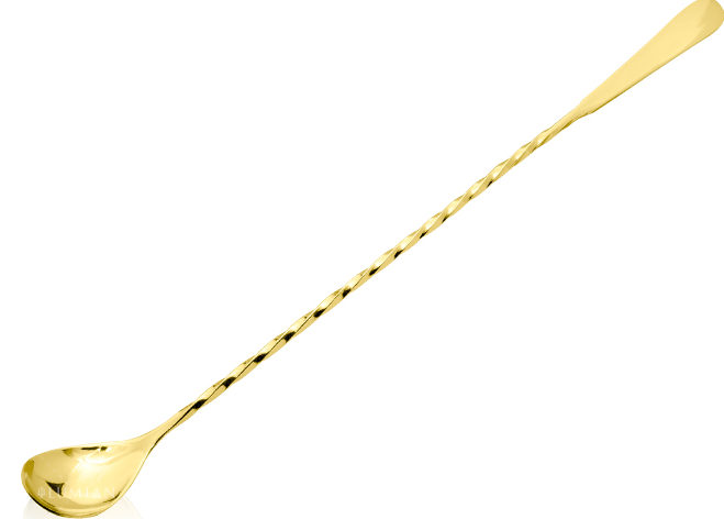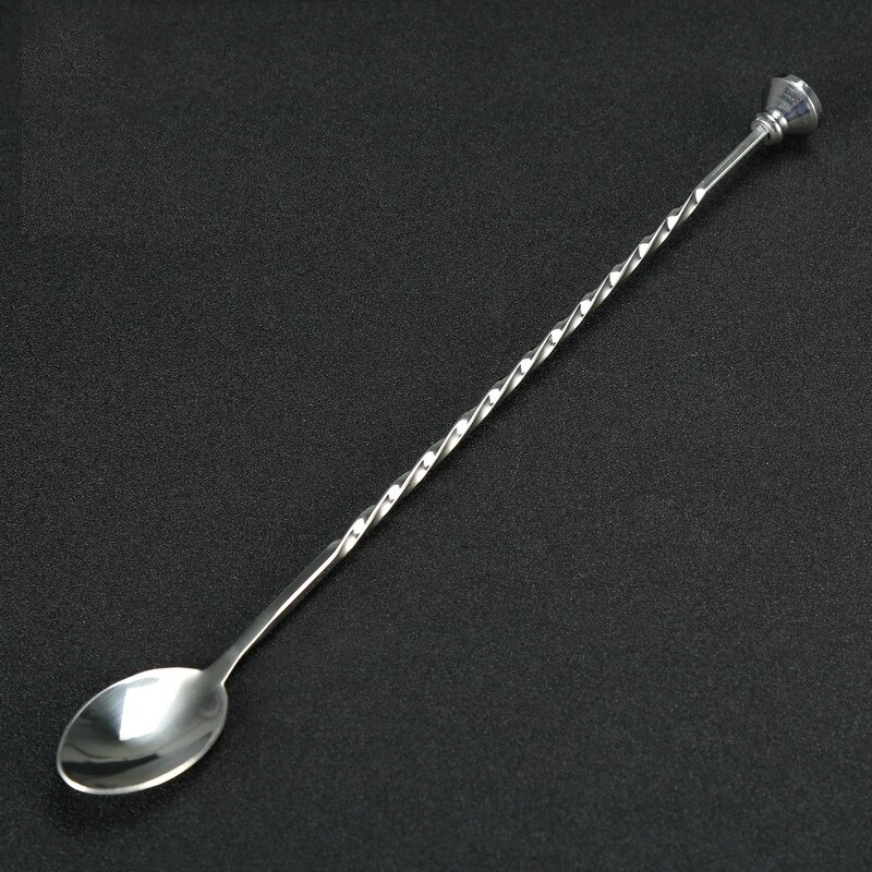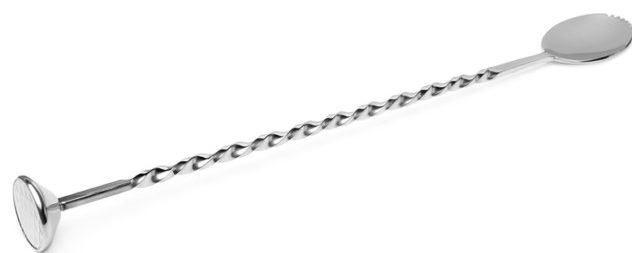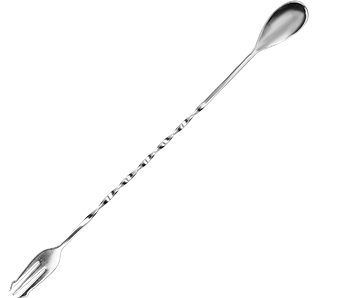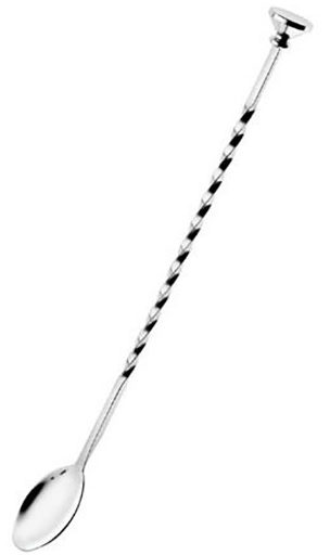 Uma colher de bar é uma colher de cabo longo usada para fazer bebidas e coquetéis. A alça do produto difere, exceto pelo comprimento, muitas vezes por ser torcida no meio ou completamente ao longo de todo o comprimento. Por ser usado em pratos de diferentes alturas, a alça do produto não possui tamanhos padrão e pode ser de 15 a 50 cm. No final da alça, via de regra, é colocado um dispositivo adicional, por exemplo, um pilão, um garfo ou um disco.