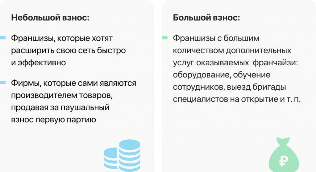 O pacote de franquia com uma taxa fixa de 150 mil rublos inclui: