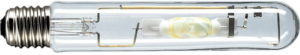 Modelo tubular robusto com base de parafuso padrão para iluminação, estruturas arquitetônicas e prediais, ruas e estradas, bem como estufas e estufas. O amálgama de sódio foi bombeado para o tubo de descarga. Está conectado a uma rede AC convencional através de reatores.