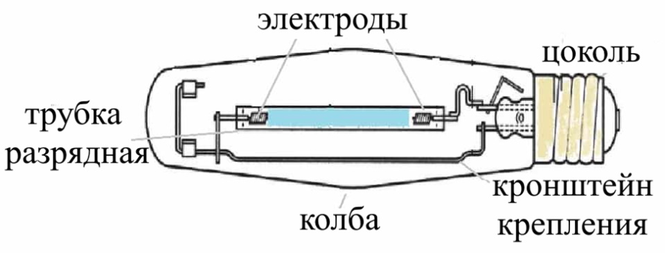 Modelo tubular com base padrão unilateral para uso em sistemas de iluminação geral para edifícios, instalações esportivas, áreas abertas do território. Está conectado a uma rede elétrica convencional com tensão de 220V através de reatores.