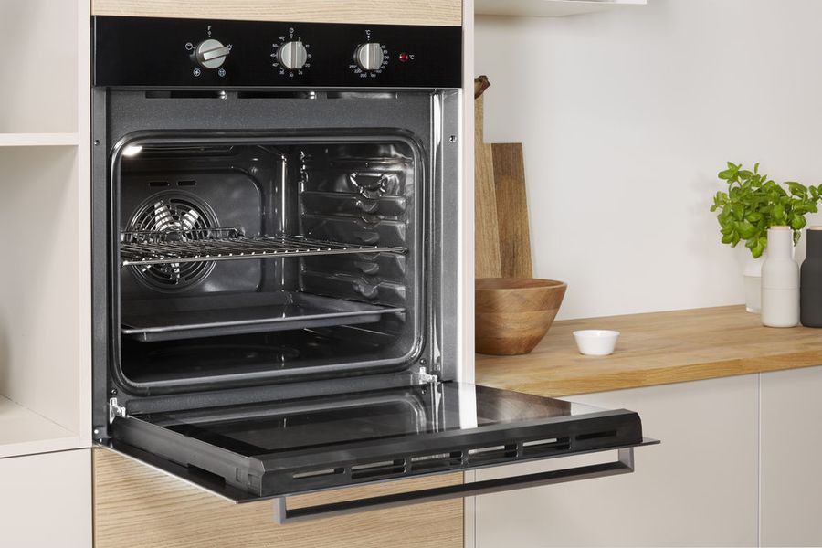 No painel frontal há um pequeno display para exibir informações básicas. A unidade tem quatro modos de cozedura: aquecimento de fundo clássico com queimador a gás, espeto, convecção e grill. Manter a unidade limpa é muito fácil, graças ao sistema de limpeza de hidrólise integrado, que lida perfeitamente com a sujeira mais difícil.