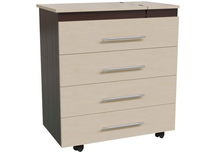 O modelo permite que você transforme facilmente uma cômoda funcional em um local de engomar completo. As gavetas profundas permitem guardar muitas coisas no interior. As alças são feitas de plástico de alta qualidade. Vida útil garantida - 5 anos. O corpo é feito de aglomerado. Altura: 93 cm Preço médio: 8699 rublos.