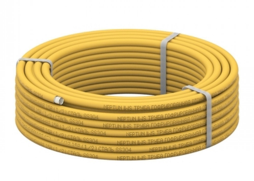 O tubo corrugado é feito de aço inoxidável, o que aumenta a durabilidade do material. Pode ser usado para fins domésticos e de consumo, bem como para abastecimento de água interior. A espessura da parede do tubo é de 2 mm. Após a compra, o comprador recebe uma garantia de 15 anos.