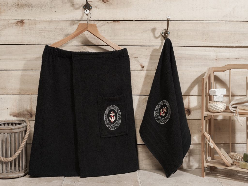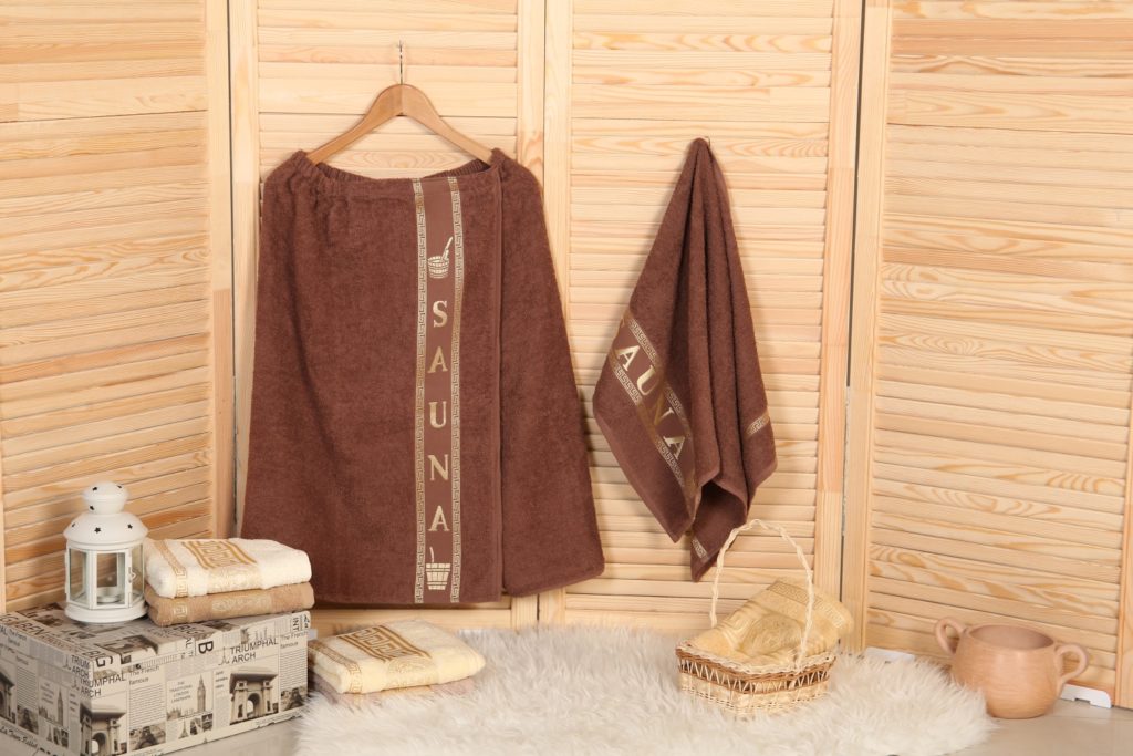 Este conjunto será uma ótima solução para aquelas mulheres que gostam de ir ao banho.O kee é fixado com botões especiais e é feito de tecido de alta qualidade. O material natural do kilt é hipoalergênico e não causará irritação. O kit inclui não apenas um pareo, mas também um turbante. O custo médio de um conjunto é de 1.600 rublos russos.