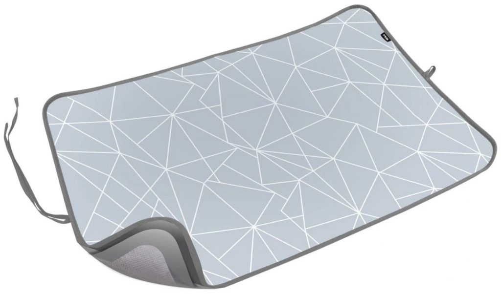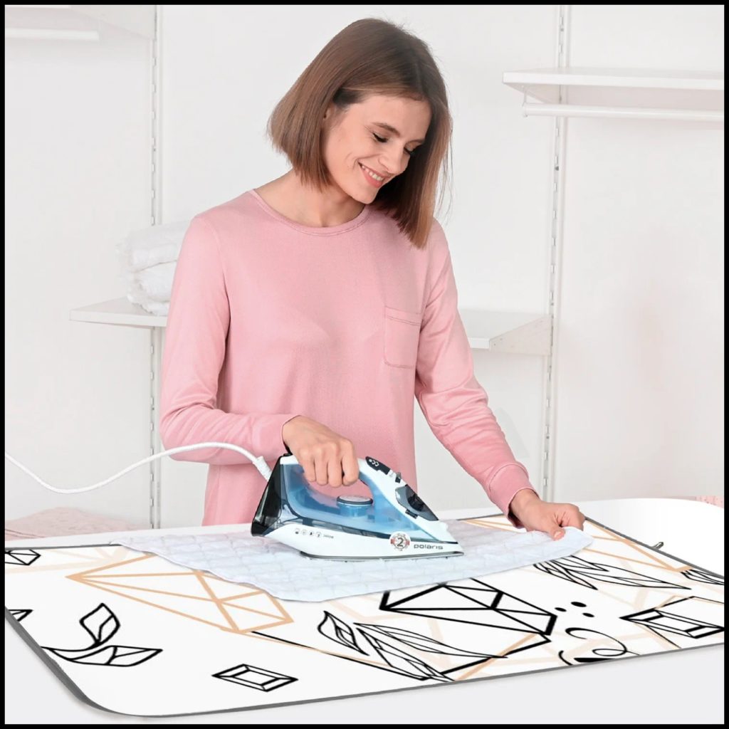 Tem um tamanho confortável e uma camada superior que evita que a roupa escorregue. Segundo os compradores, esse tapete de passar roupa será uma excelente opção para famílias com renda média ou moradores de um pequeno apartamento. O substrato tem várias camadas ao mesmo tempo. É capaz de reter a umidade e o vapor quente, evitando que danifiquem os móveis, o que permite usar o ferro em plena capacidade. Em termos de volume, o produto não ocupa mais espaço do que uma toalha padrão, mas você pode passar roupas nela mesmo em uma simples mesa de centro ou sofá.