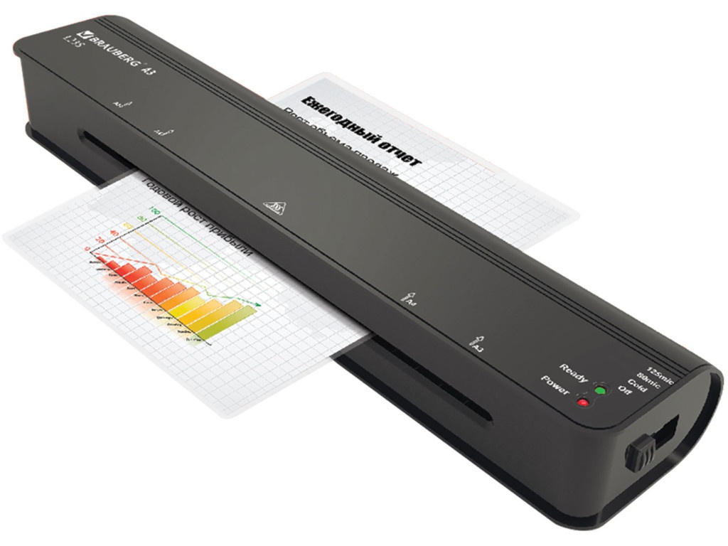 Um dos modelos mais econômicos que permitem laminar folhas A4, é fácil de usar e de tamanho pequeno.A colagem do filme é realizada a quente, no que diz respeito à espessura do material aplicado, pode chegar a 125 mícrons, e a velocidade é de 30 cm por minuto. Uma das principais desvantagens é o aquecimento lento para o trabalho e, portanto, o modelo é perfeito apenas para uso em casa.