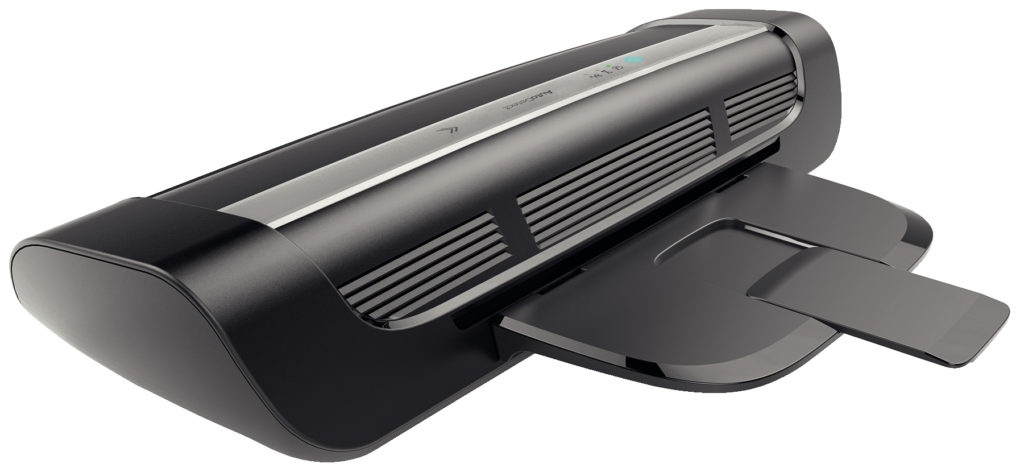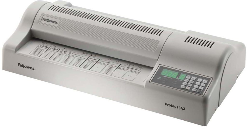 Um excelente laminador que permite processar até 100 folhas de tamanhos até A3 por dia, a taxa de aquecimento é inferior a um minuto, a área de cobertura é de 1 metro por minuto. 6 eixos estão escondidos sob o corpo do dispositivo, que proporcionam aquecimento uniforme e aplicação de polietileno de alta qualidade, e o painel de controle existente permite definir a temperatura e a velocidade desejadas. A espessura do filme de 75 a 250 mícrons é adequada para o trabalho. Apesar da alta qualidade dos produtos, Fellowes Proteus não requer habilidades especiais para trabalhar e, portanto, até um iniciante pode lidar com isso.