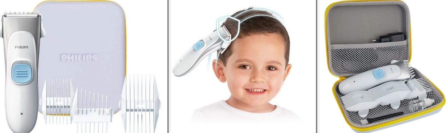 Como escolher um aparador para arrumar o cabelo da criança: preste atenção ao nível de ruído do aparelho emitido durante a operação e à segurança da lâmina (deve ser arredondada e feita de cerâmica). São bicos de cerâmica que não irritam o delicado couro cabeludo da criança.