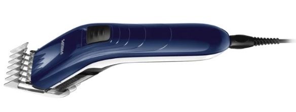 Máquina doméstica com lâminas arredondadas e seguras para a cabeça em uma caixa de plástico azul. É fácil de operar, equipado com um bico, o comprimento é ajustável em 11 posições. O preço barato do modelo superou todas as expectativas, como evidenciado pelas avaliações positivas dos clientes com notas de admiração. A qualidade das lâminas permite que você simplesmente as lave com água. Acompanha apenas escova e carregador.