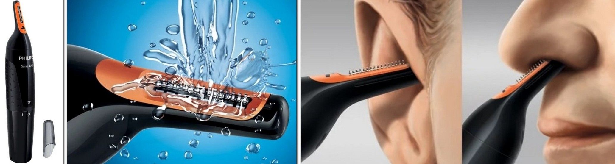 O dispositivo vibratório com lâminas auto-afiáveis que podem ser lavadas em água é adequado para aparar orelhas, nariz e outras partes do corpo, como braços ou sobrancelhas. A alça está equipada com inserções de borracha que não permitem que a máquina escorregue em sua mão. A cor do corpo é uma combinação de cabeça laranja e corpo preto. Funciona com bateria, o que é muito conveniente: uma simples troca de energia + qualquer uso de tecnologia.