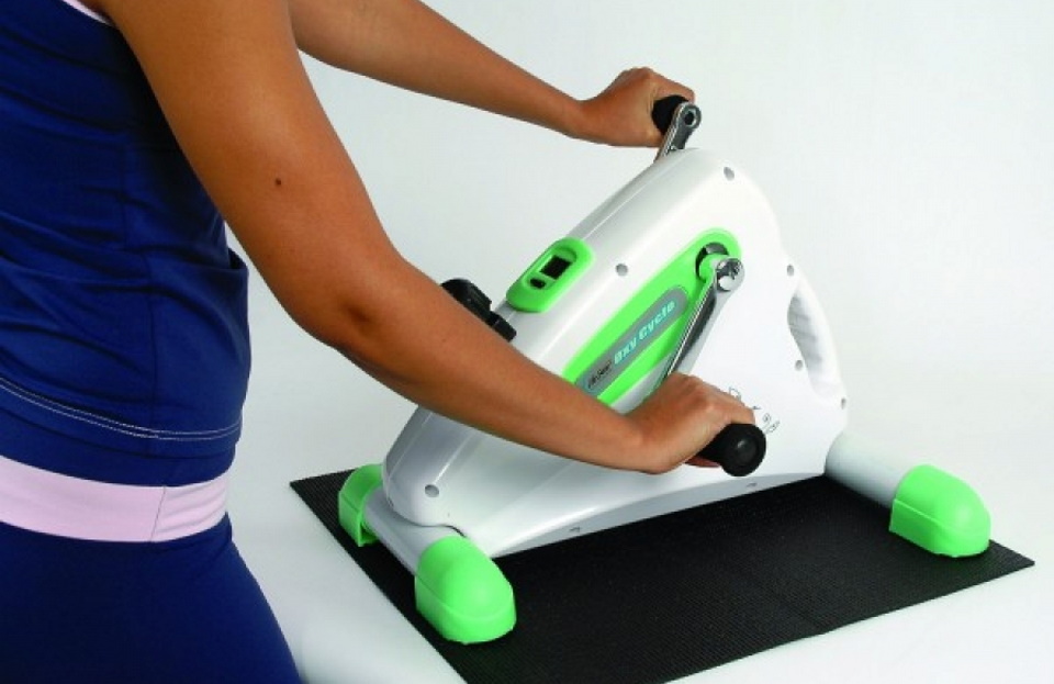 Uma mini bicicleta ergométrica é um tipo de bicicleta ergométrica que imita uma bicicleta sem volante e selim, apenas com pedais e mecanismo de carga.