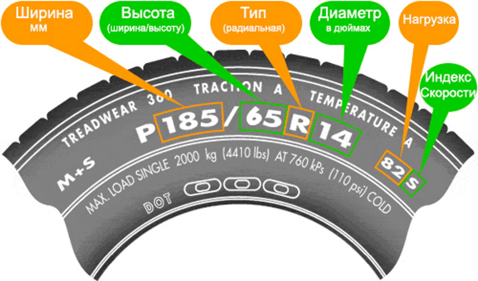 Fornece uma escolha de modelo adequado para o aro instalado. Está marcado na parede lateral com uma combinação de números e letras latinas, que indicam: