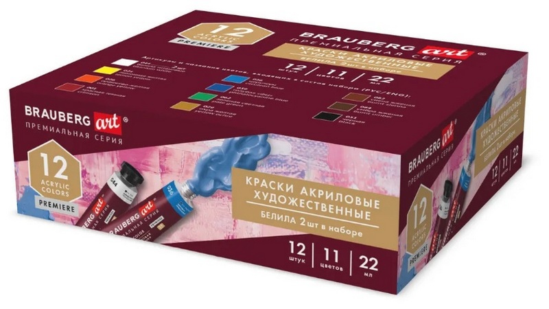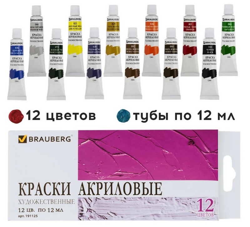 Estes produtos da famosa marca "Brauberg" destinam-se a trabalhos de pintura e decoração. As tintas são aplicadas de forma fácil e simples em praticamente qualquer superfície. Cores brilhantes, saturadas e volumosas conferem à imagem grande expressividade. A secagem rápida não muda de cor. Caracterizado por excelente proteção e resistência à luz, pode ser diluído com água. Eles têm um acabamento fosco, não são tóxicos e não têm um odor pungente desagradável. O material é fornecido em bisnagas de 12 ml em caixa de papelão. O custo recomendado para redes de varejo é de 329 rublos.