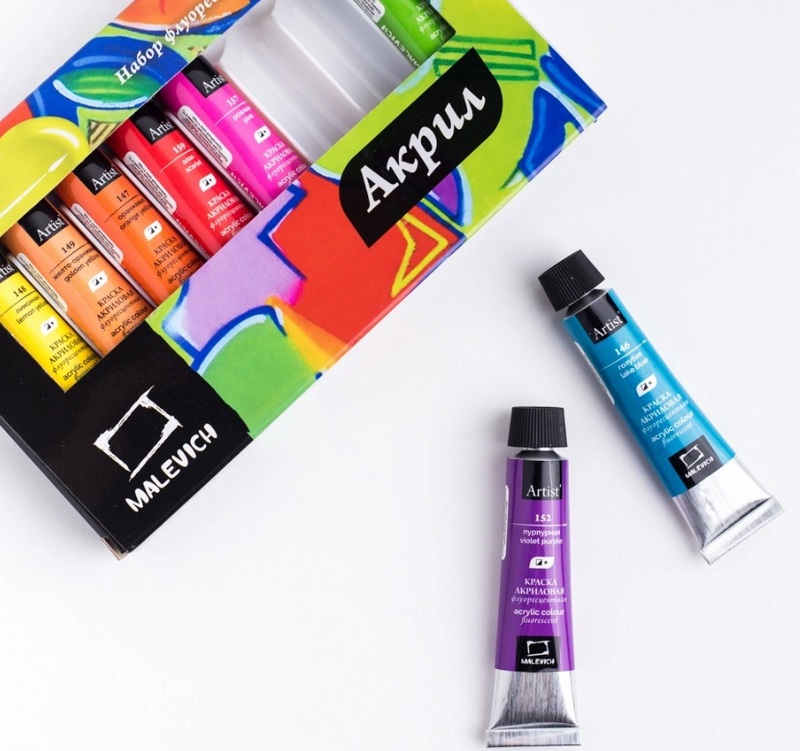 O acrílico é um meio versátil e de secagem rápida para pintura em praticamente qualquer superfície, de tela e madeira a metal e têxteis. Essas tintas são fáceis de usar, possuem excelentes características de brilho, que juntas permitem criar efeitos visuais em vários níveis e texturas de complexidade variável. Acrílico é adequado para iniciantes e artistas profissionais. A tinta em si é muito popular entre os multiplicadores, razão pela qual foi sua rica gama de cores e a ausência de elementos nocivos na estrutura. O desenho com este tipo de tinta é permitido mesmo para crianças pequenas devido à sua compatibilidade ambiental e não toxicidade.