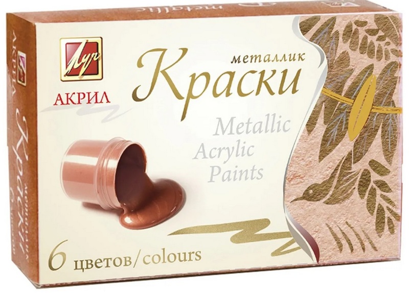 Cores disponíveis: prata, ouro, cobre, preto, bronze, ouro antigo (envelhecido). Projetado para aplicação em papel, papelão, produtos de madeira, gesso, cerâmica.Após a secagem, forma uma camada superficial impermeável. O custo recomendado para redes de varejo é de 294 rublos.