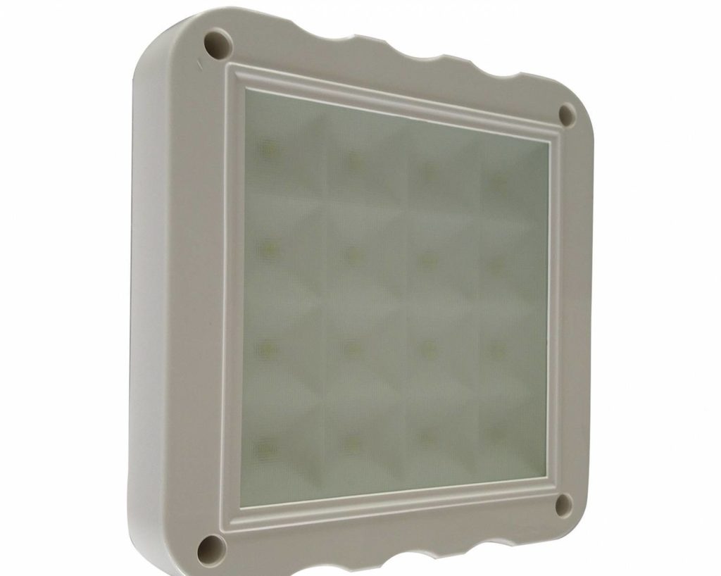 Esta luminária pode ser usada para montagem na parede e no teto. É usado com mais frequência quando é necessário destacar uma determinada área da sala, por exemplo, na área da cama ou da mesa. Externamente, o produto parece um pequeno quadrado com lâmpadas de LED. Apesar de seu pequeno tamanho, a lâmpada ilumina até 6 m2. A tampa de plástico é fácil de limpar e vai durar muito tempo.