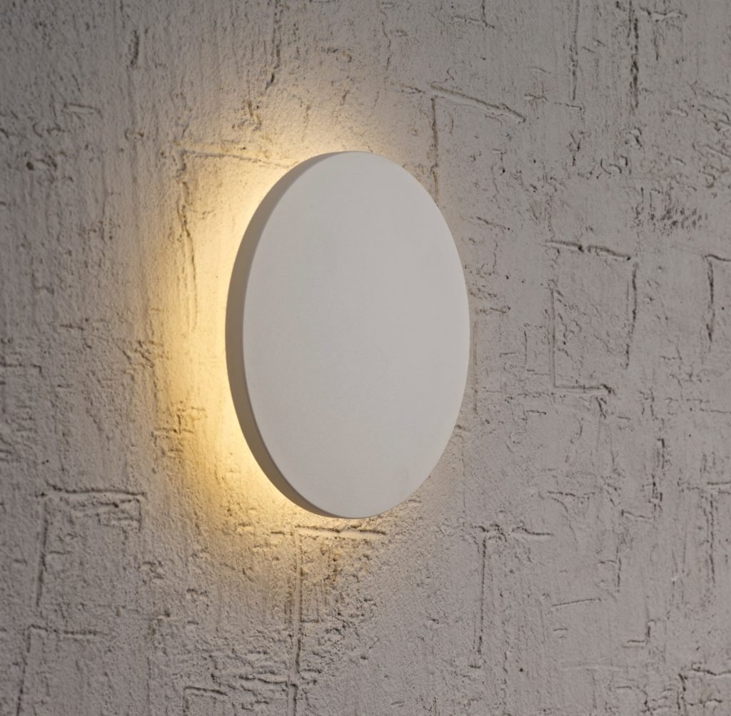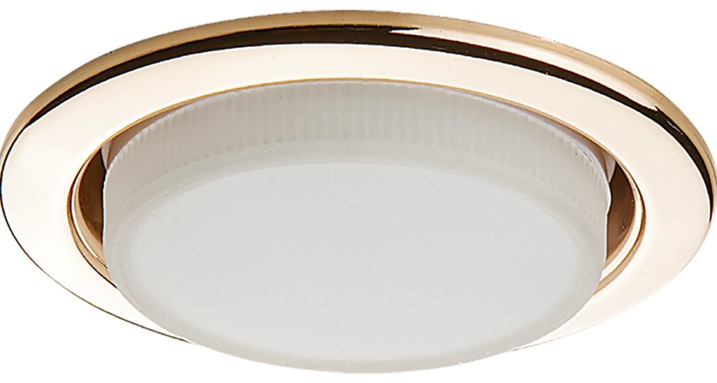 A estrutura embutida parece um círculo, parte do qual corta a parede. Um pequeno teto fosco sem decorações adicionais tem aplicação universal. Um LED de 6 watts é usado como fonte de luz. Você pode comprar este modelo em lojas especializadas ou encomendá-lo online. A entrega é feita pelo serviço de correio.