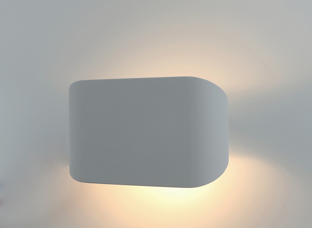 A construção da parede é fornecida para 2 lâmpadas. São utilizadas lâmpadas LED com base GU10. O produto ilumina 4 m.2. A luz é suave, portanto, para salas grandes, recomenda-se o uso de vários modelos.