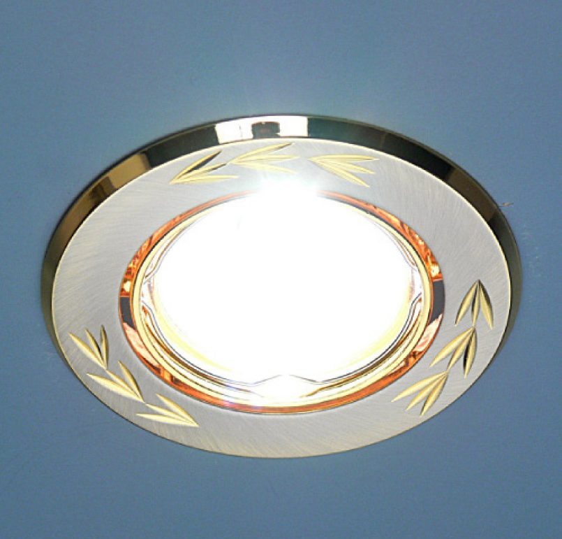 Lâmpada LED embutida ilumina uma área de 2,86 m². Este modelo será o complemento perfeito para o estilo high-tech. A parte superior do teto é feita em cinza, portanto o material é adequado para qualquer tipo de parede. Na maioria das vezes, esse tipo é escolhido para o banheiro, pois possui alta proteção contra a umidade.