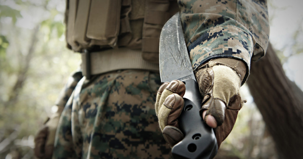 Entre as armas do exército modificadas para necessidades civis, destaca-se a Militar, produzida pela fábrica de Kizlyar. A parte de corte da lâmina é estreitada em direção à ponta. Uma lâmina sólida coberta com um revestimento preto fosco passa pelo cabo. A alça de elaston não escorrega nem gruda na pele. O revestimento antirreflexo protege a lâmina dos efeitos das condições ambientais agressivas e não se apaga mesmo com o uso ativo.
