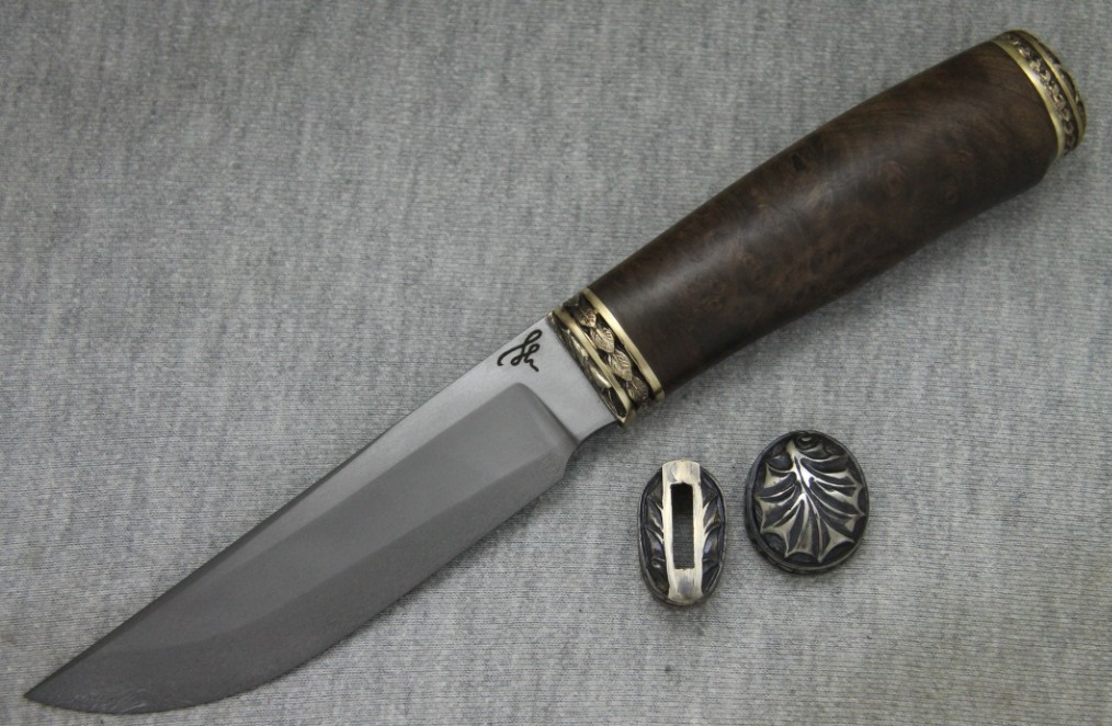 O cabo, feito de bétula da Carélia, é caracterizado por maior resistência ao desgaste e não está sujeito a processos corrosivos.